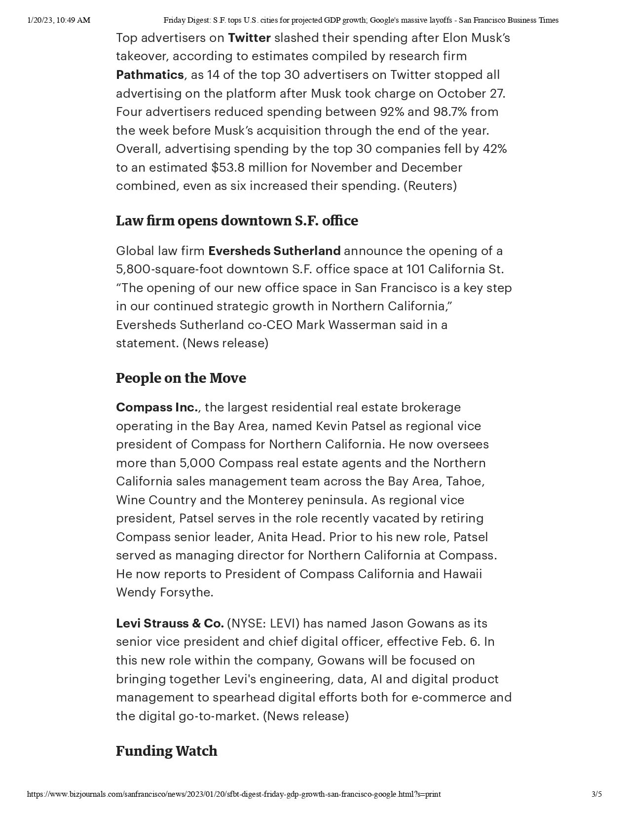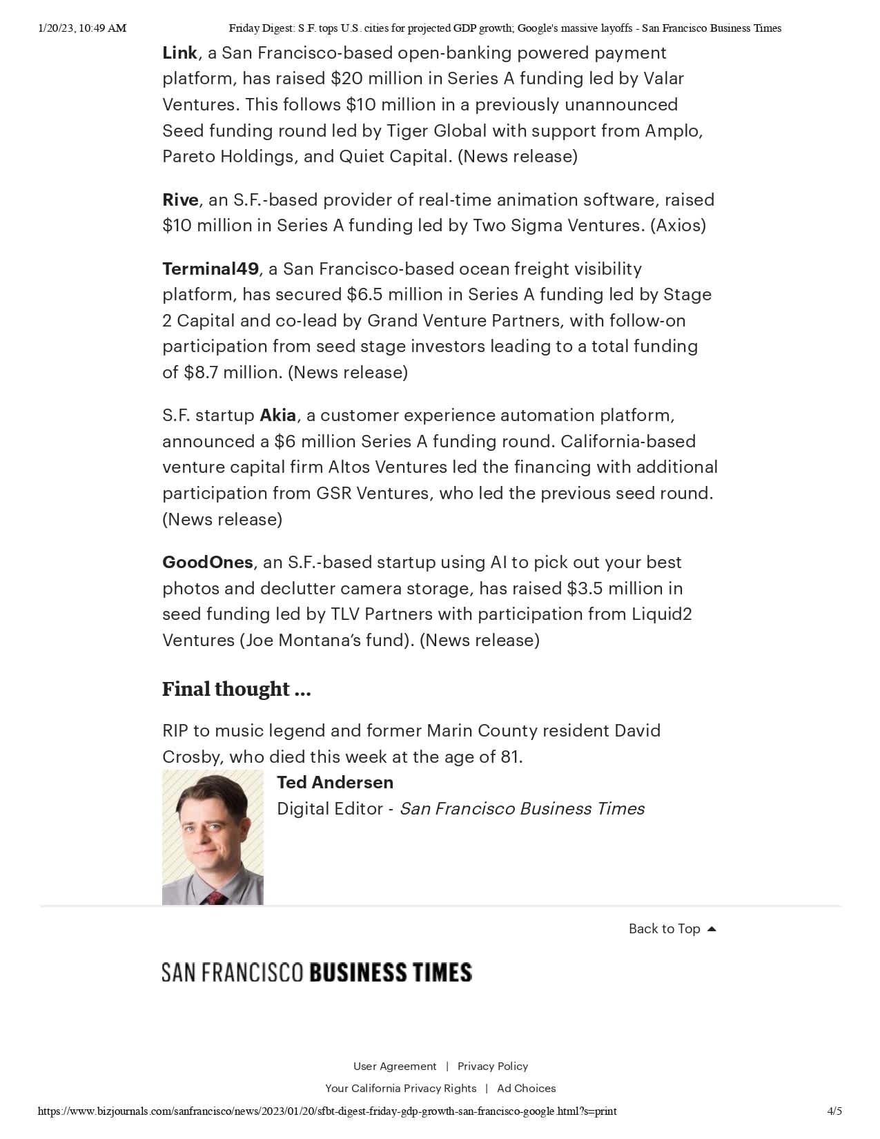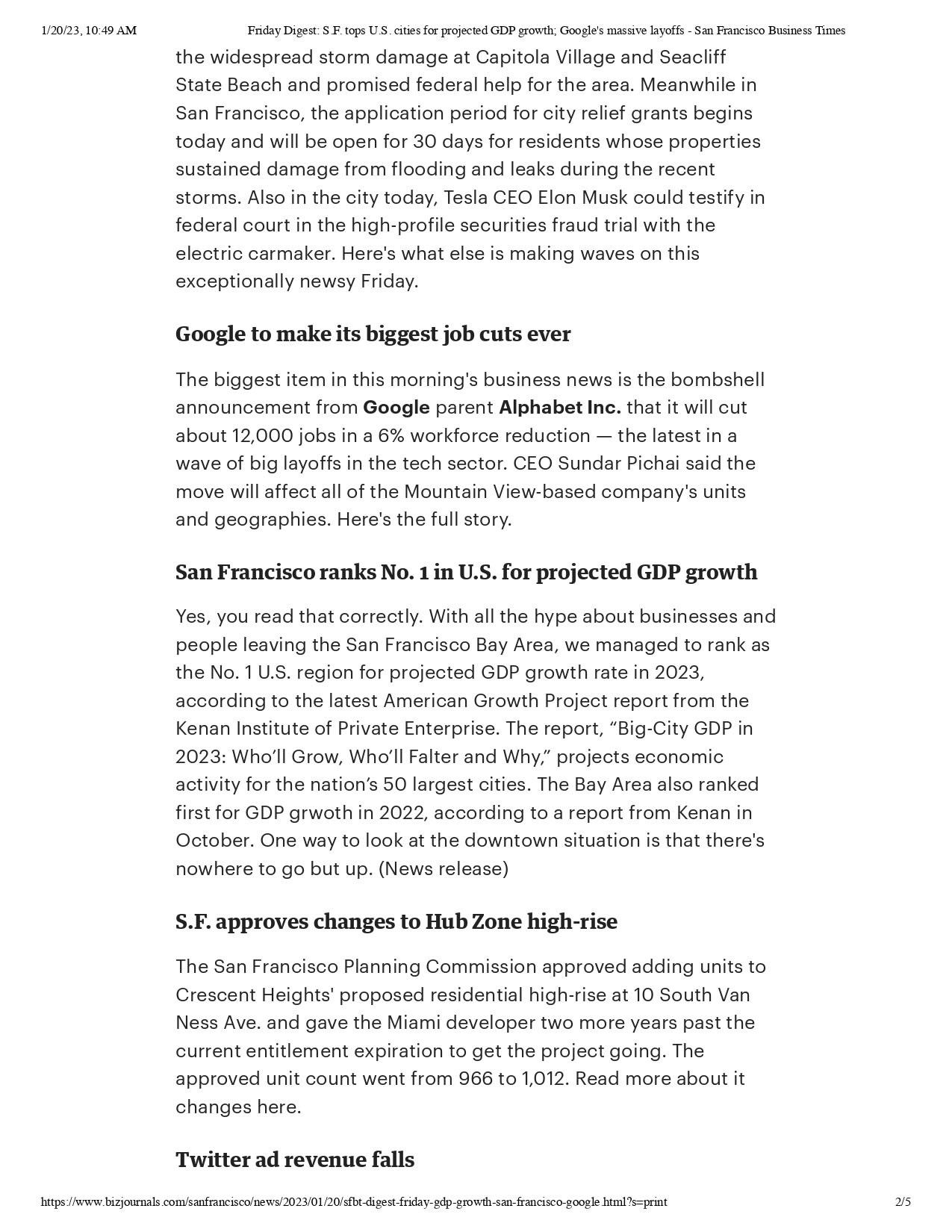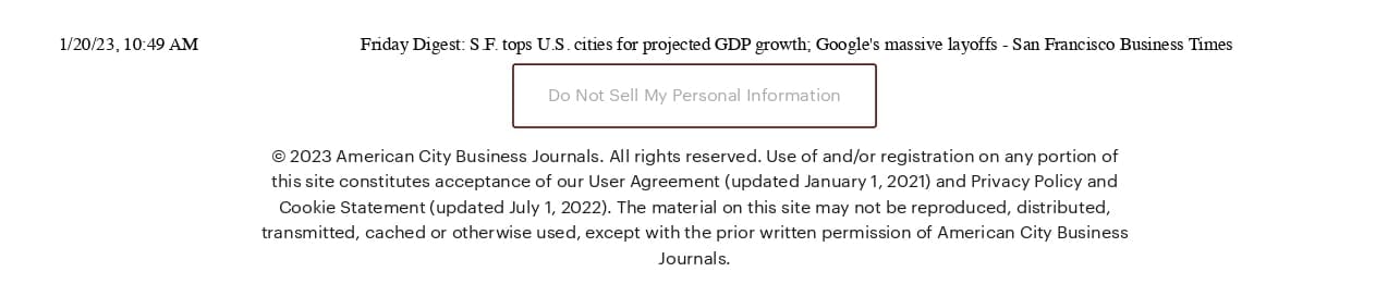 San Francisco ranks No. 1 in U.S. for projected GDP growth Yes, you read that correctly. With all the hype about businesses and people leaving the San Francisco Bay Area, we managed to rank as the No. 1 U.S. region for projected GDP growth rate in 2023, according to the latest American Growth Project report from the Kenan Institute of Private Enterprise.